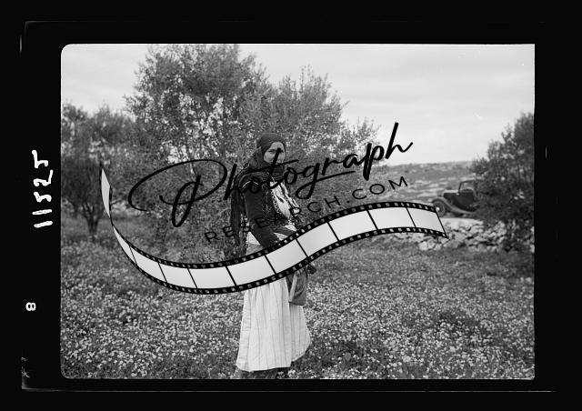 Native woman of Galilee in patch of flowers,Middle East,Matson Photo,1940