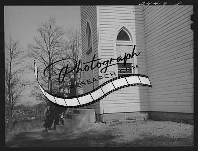 Title: Group singing hymns at the opening of the Sunday school. While there are no churches on the project there are five or six in the area close by. This one is just off the project and is attended by many project members. Dailey, West Virginia