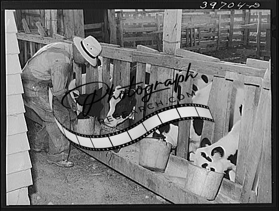 Title: Member of the Dairymen's Cooperative Creamery cooling fresh milk in water trough on his farm. Caldwell, Canyon County, Idaho