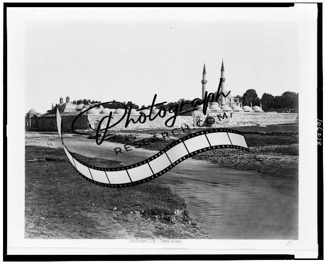 Damascus,Dervishery,streams,mosques,religious building,dome,F Bonfils,Syria,1870