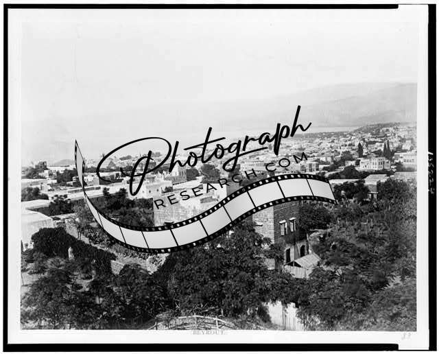 Beyrout,Beirut,buildings,sities,structures,trees,roads,Lebanon,P Bergheim,1860