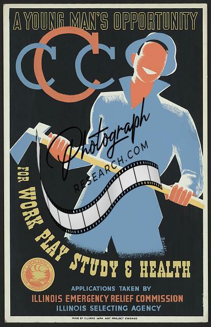 A Young Man's Opportunity for Work,Play,Study,Health,WPA,CCC,1941,Pickaxe
