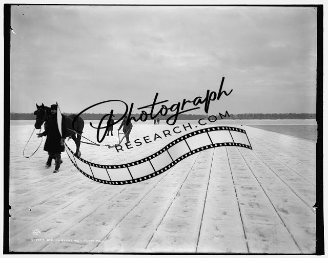 Ice harvesting,industry,snow,plowing,horses,Detroit Publishing Company,1900