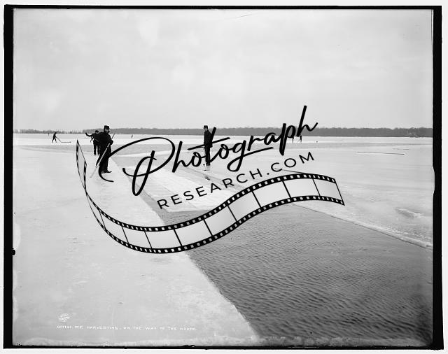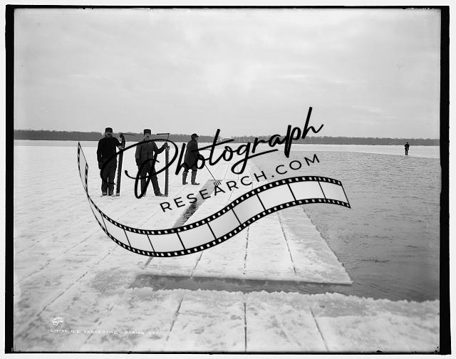 Ice harvesting,baring off,industry,water bodies,Detroit Publishing Company,1900