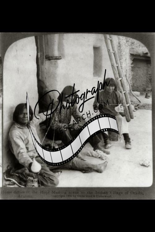 Home Duties of Hopi Man,Indian Village,Oraibi,Arizona,AZ,Hand Spinning Wool,1903
