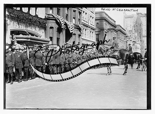 Police at Celebration,horseback,American flags,buildings,Bain News Service