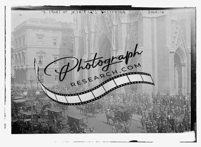 In front of St. Patrick's,Easter 1914,Holiday,automobiles,carriages,people