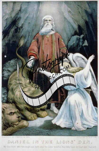 Daniel in the lions' den,1856-1907,Lion,Angel,Currier & Ives Photo