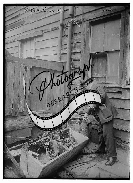 Where Mosquitos Breed,man looking in wooden barrel,Bain News Service,outside