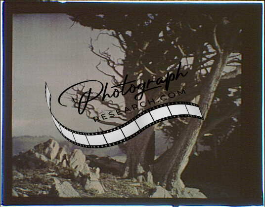 Cypress trees,rocks,plants,Carmel,California,autochromes,Arnold Genthe,1906