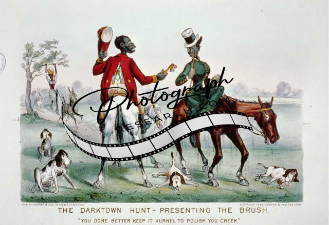 Darktown Hunt,Presenting the Bush,Humor,1892,Horseback Riding,Hunting,Dogs