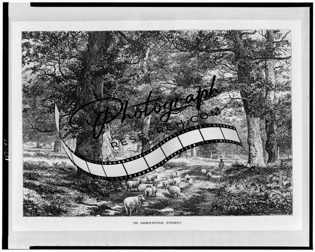 In Sherwood Forest,Shepherd,Sheep,England,Trees,1840-1890,Josiah Wood Whymper