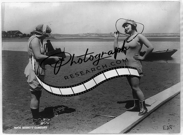 Roxy McGowan,Mary Thurman,bathing suits,taking,picture,beach,Mack Sennett,c1918