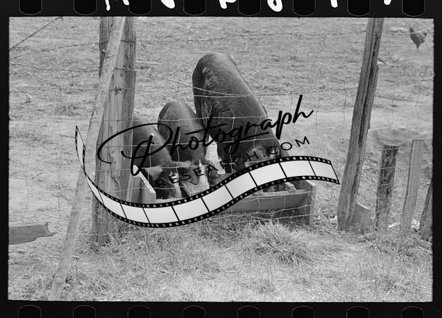 Pigs feeding in trough on farm,Morganza,Louisiana,LA,Farm Security Admin,1938