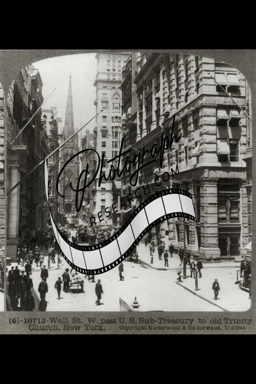 Wall Street,U.S. Sub Treasury,Old Trinity Church,New York,NY,c1910,People,Autos
