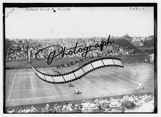 Forest Hills,tennis,courts,athletes,crowds,spectators,sports,net,hats,men,1920