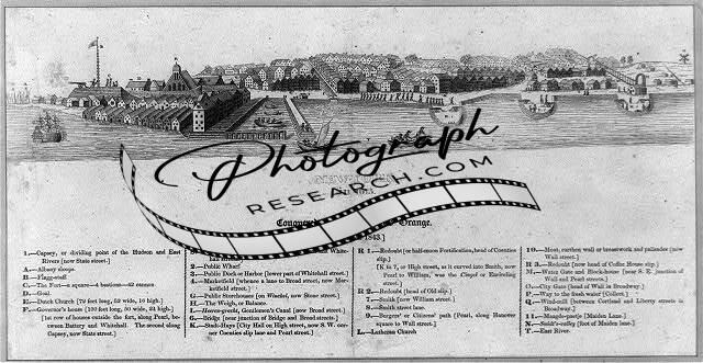 New York in 1673,NY,Public Wharf,East River,Lutheran Church,City Gate,Harbor