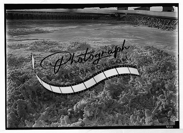 Title: Dead Sea album prepared for the Palestine Potash Ltd. Snow drift effect in one of the evaporting pans showing a workers' shanty on the bank