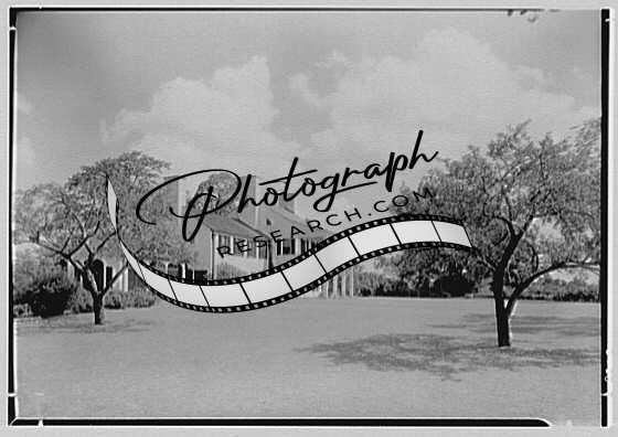Title: Dean Mathey, residence, Prettybrook Farm, Princeton, New Jersey. Rear of house framed under tree and well