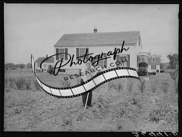 Title: Walter Bollinger in his garden. Decatur Homesteads, Indiana