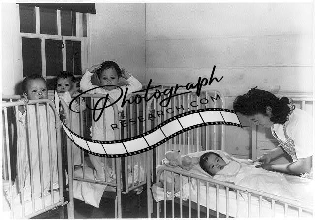 Orphan infants in nursery,Manzanar Relocation Center,California,CA,c1943