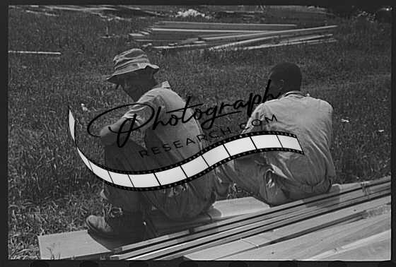 Title: Workers during lunch hour putting up prefabricated defense houses managed by FSA (Farm Security Administration), Hartford, Connecticut