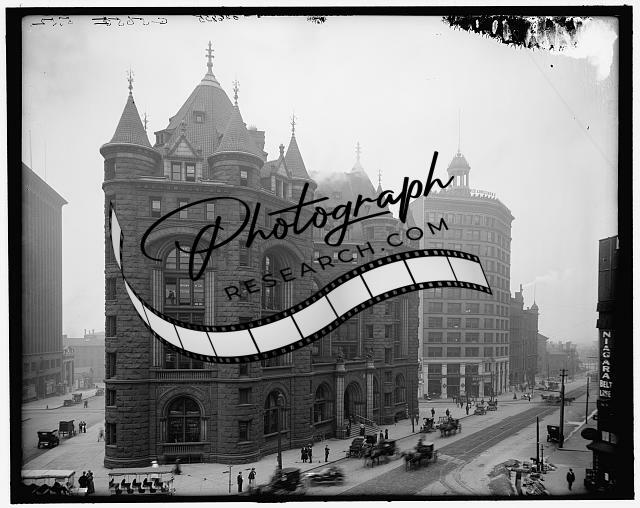 Erie County Savings Bank,streets,buildings,carriages,Buffalo,New York,NY,1905