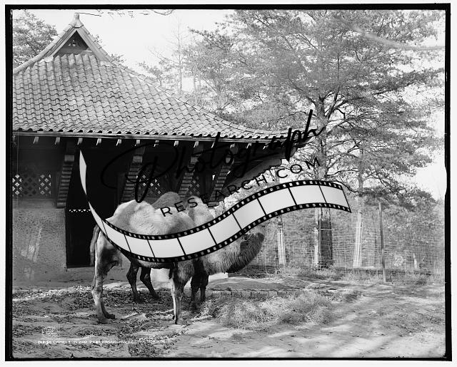 Camels,zoo park,animals,cages,trees,habitats,buildings,Washington DC,c1906