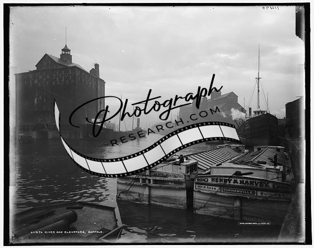 River,elevators,barges,grain,boats,Henry,Harvy,shipping,Buffalo,New York,c1900