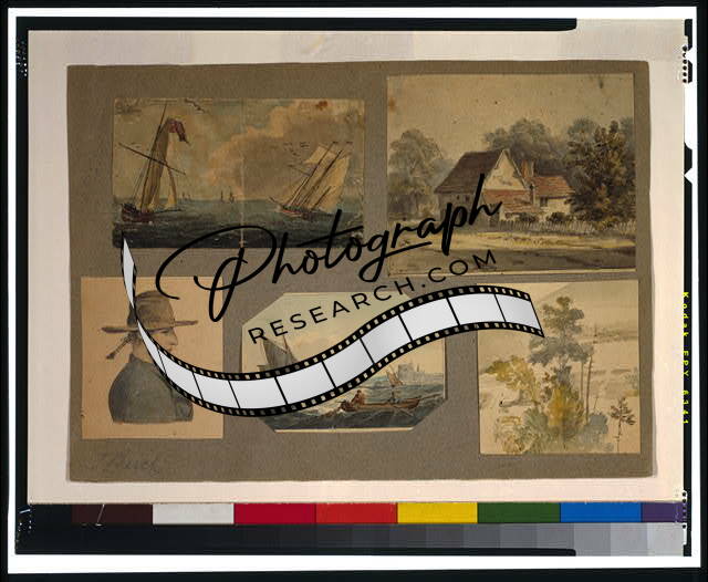 Photo of 5 Sketches,Marine,House,Landscape,Trees,Sailboat,Dwelling,c1825