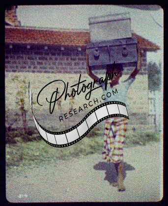 Young boy carrying large trunks on head,Delhi,India,1895,William Henry Jackson