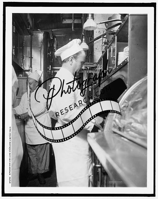 Kitchen,deluxe overland limited train,railroad cars,trains,interiors,worker,1910