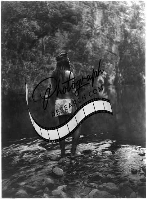 The Apache,standing in stream,Black River,Arizona,AZ,c1906,rear view,male,Curtis