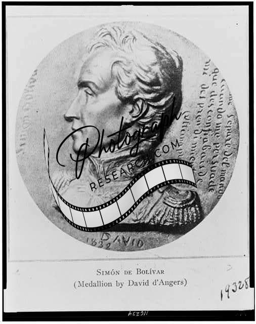 Photo of Medallion,Simón Bolívar,bust,set in relief on medallion,David d'Angers