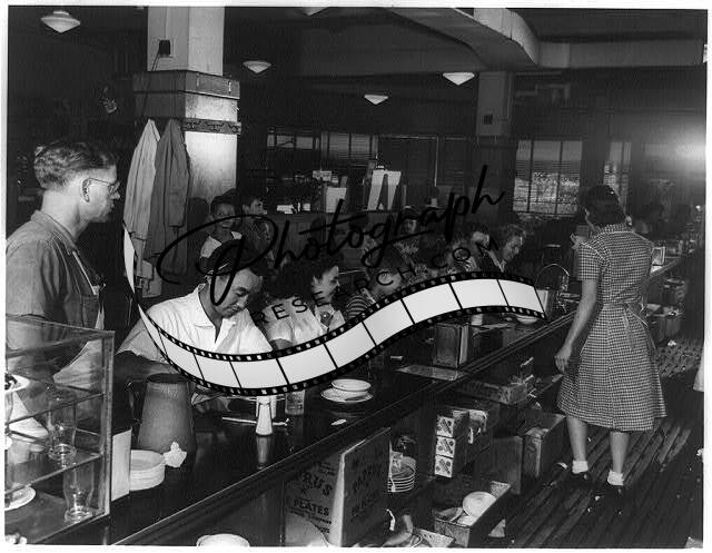 Greenbelt,Prince George's County,Maryland,MD,people eating,lunch counter,1946