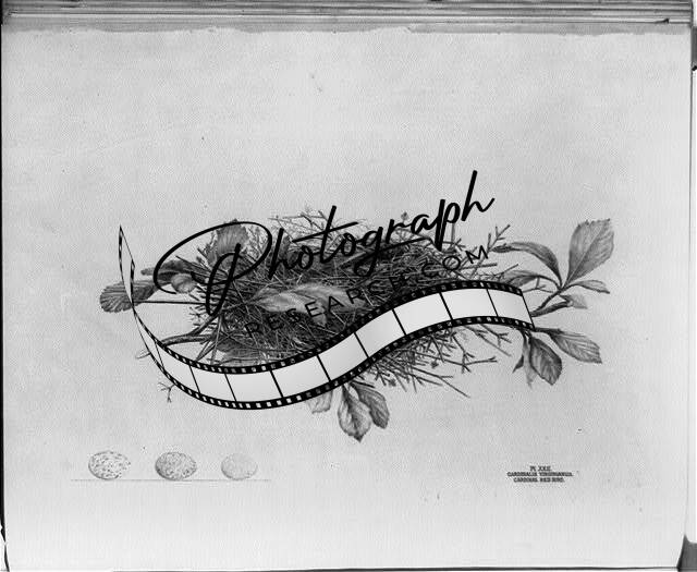 Cardinalis Virginianus,Cardinal red bird,nests,eggs,branches,leaves,Ohio,1886