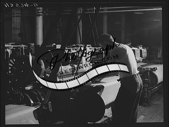 Title: At a loom in the Denomah Mills, Taftville, Connecticut. Makers of cotton and rayon cloths