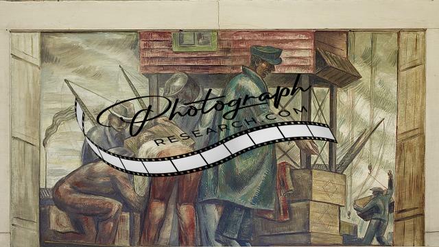 Title: Fresco painting above room 5137 entrance, Department of Justice, Washington, D.C.