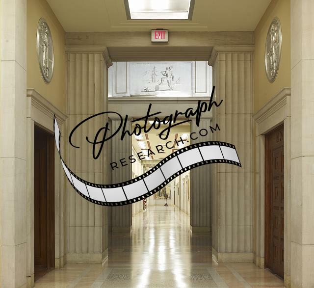 Title: Full view, fifth floor lobby, Department of Justice, Washington, D.C.