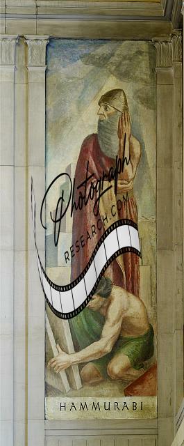Title: Two oil paintings 'Violent activities of the Department of Justice' and 'An Arrest,' fifth floor, elevator no. 10, Department of Justice, Washington, D.C.