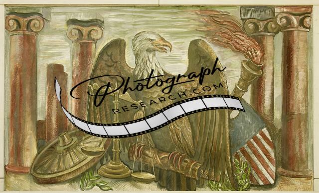 Title: Close up of oil painting 'Contemporary Justice and Woman,' first floor lobby, Department of Justice, Washington, D.C.