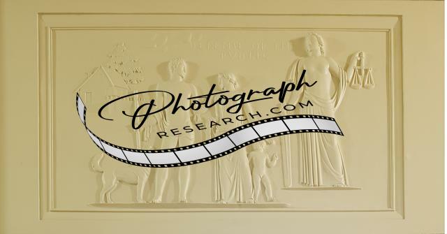 Title: Close up of oil painting 'Contemporary Justice and Woman,' first floor lobby, Department of Justice, Washington, D.C.