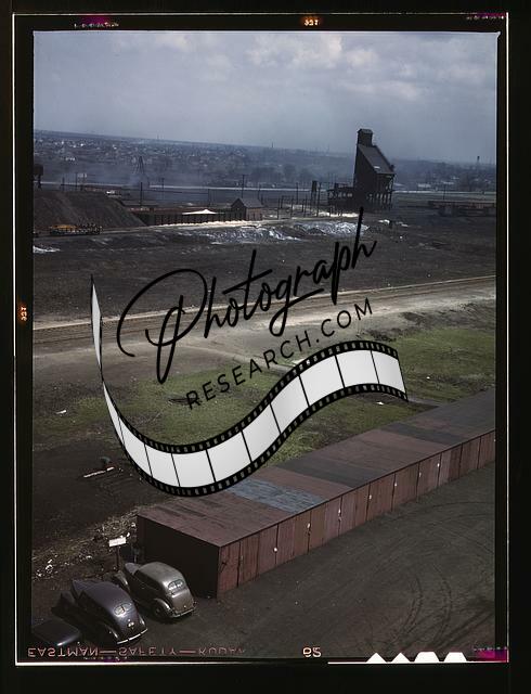 Locomotive,railroad yard,trains,Chicago,Northwestern Railroad,Illinois,IL,1942
