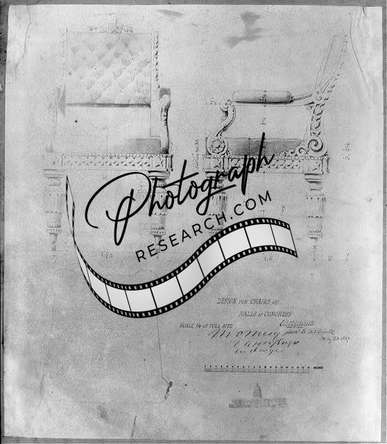 Design for chairs of Halls of Congress,US Capitol,1852-1860,photo of drawing