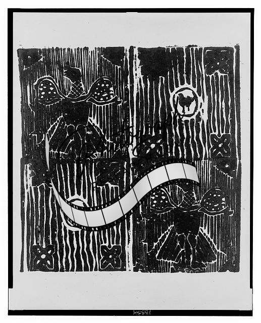 Tropical moon, Print showing the head-and-shoulders of a black woman illuminated from behind by a full moon with palm trees framing the print. , Seabrook, Georgette, 1916-, artist