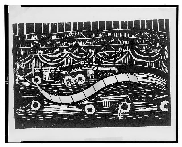 The race, Print showing cars on a race track with spectators beyond. , Avant, Lawrence, artist