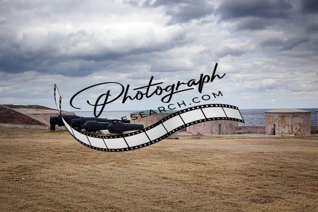 Title: Detail of Morro Castle with view of Havana, Cuba, in background