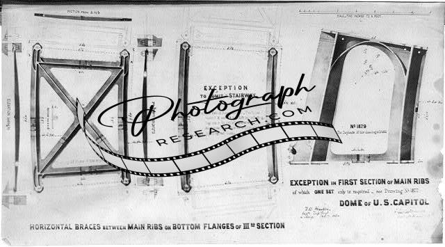 Dome,US Capitol,exception in 1st section of main ribs,horizontal braces,c1855