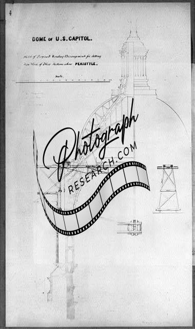 Dome,US Capitol,sketch of proposed hoisting arrangement,iron work,peristyle,1855