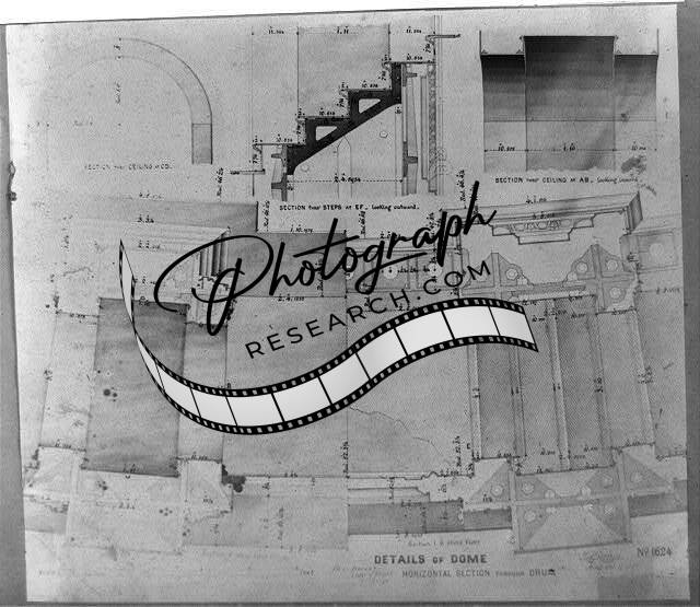Details of dome,floor plates,balustrade on top of peristyle,US Capitol,c1855